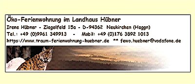 Wir bieten unseren Feriengästen nachhaltigen und klimaneutralen Urlaub im Bayerischen Wald. Woran wir glauben: Ökologie und Ökonomie ergänzen sich hervorragend bei einem Ferienhaus-Urlaub und dieser ist nicht teurer als ein konventionell verbrachter Urlaubs-Aufenthalt - Nachhaltigkeit ist für uns kein Marketing-Gag ! Unsere Ferienwohnung am Fuße der Bayerwald-Berge überzeugt durch traditionelle, naturnahe Bauweise mit dem hohen Komfort eines modernen Hauses. Ebenso wie das Wohl unserer Gäste liegt uns auch der Umweltschutz und ein nachhaltiges Handeln für die kommenden Generationen am Herzen. Wir haben durch zahlreiche Maßnahmen sicher-gestellt, daß ein Urlaubs-Aufenthalt bei uns klimaneutral und nachhaltig erfolgt. Mit unserer Mitgliedschaft bei NatureFund und dem Blue Planet Certificate möchten wir zum Klimaschutz beitragen. Zwei Bäume werden monatlich durch unseren Beitrag neu gepflanzt. Mit dem Konzept des Blue Planet Certificate stellen wir das komplette Öko-Landhaus Hübner CO2-neutral. Wenn unsere Feriengäste dann ihren Urlaub (mit der An- und Abfahrt) auch noch klimaneutral durch eine Aktion bei NatureFund stellen würden, wäre das natürlich perfekt !